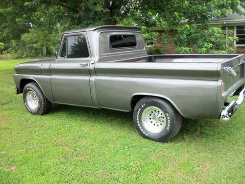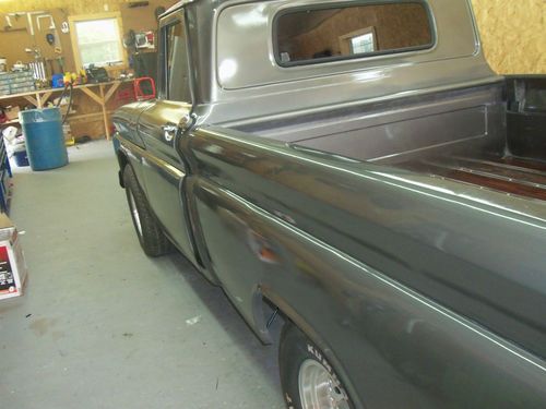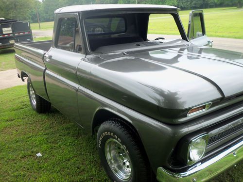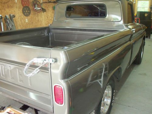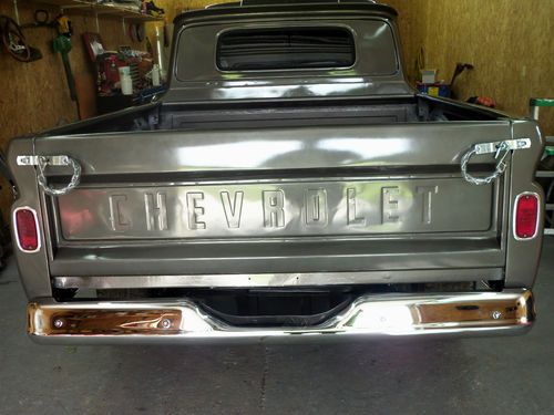To start with I rebuilt this for a customer at his request, he couldn't pay me so he brought me the title, i have a free and clear title in my name...that being said ...This is a 1965 c-10 short bed chevy pick up, has a rebuilt 350 small block, 4 bolt main bored 0.60, speed pro pistons, lunati .465 camshaft and lifters, 062 vortec heads, clevit bearings, lunati timing set, all new apr hardware, rebuilt turbo 400 tranny with b&m shift kit and torque converter, all new bushings in front A-arms, new ball joint, shocks, springs and brake lines, blasted and painted frame new oak wood and stainless strips in the bed and new stainless hardware, new wire harness threw out the whole truck and not a cheap 13 circuit jobs, it was a 500 dollar kit and will come with all the schematic's , all new power brake update with rotors, calipers, master cylinder and proportioning valve, all new lines, new fuel tank that mounts under the rear of the bed , new power steering update with new steering gear box, pump and lines, recovered seat, new carpet, and door panels, all new chrome bumpers, bezels ect, paint is about a 7 out of 10, has a few bad spots but not to noticeable, have lots of pics if you want or new more just email me, i spent 12,000 in parts alone, runs and drive great, having the new windshield installed on Tuesday, low reserve that is no where close to the buy it now price so happy biding ..