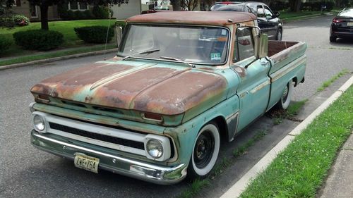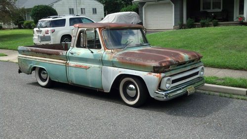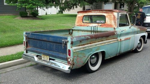 1965 CHEVY TRUCK GREAT PATINA 1977 CHEVY 305 WITH HEADER VERY LOUD THREE SPEED ON THE COLUMN