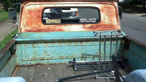 RUNS AND DRIVES I DROVE IT EVERYDAY FOR TWO YEARS TO WORK. NEW DISC BRAKES ALL A ROUND, POWER BRAKES, DROP SPINDLES, NEW SHOCKS IN FRONT, AIR BAGS IN BACK, NEW HEATER CORE, ALL NEW TIRES EXCEPT ONE, SPARE TIRE MOUNTED UNDER BED. NEEDS NEW BLINKER CAM AND VISORS. IT IS ONE OF A KIND