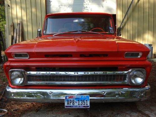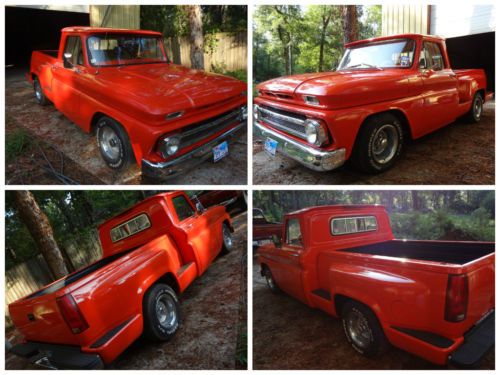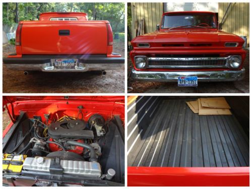 ******1965 CUSTOM CHEVY PICK-UP****** 1965 Chevrolet Pickup with a 1989 side bed. This step side pick up is coated beautifully in Orange paint and has no issues. It is a rust free truck that is fresh. All of the chrome and trim is in place and looks amazing. The truck rides on classic Chevrolet rally wheels with beauty rings that help maintain that original look. This would make a great collectors addition or nice daily driver for that "Old School" look. Reminisce once again and make it a daily memory that can be yours to show off at the local car enthusiast gatherings. The small block 400CI is bored .060 over and has plenty of power. The engine type listed above in "Product details" is in error due to eBay limitations for listing and engine type is as stated in this description. It has a mild street cam and has a great sound through dual exhaust. The cross fire fuel injection Corvette engine set up gives the engine a custom look that you don't usually see. The 350 automatic shifts very smoothly and shifts in perfect timing. The power brakes are in place and slow the truck to a stop with ease. The interior is finished out very nicely with a matching Orange dash and brand new custom interior (seat & carpet) & bench seat consistent with its era. It was finished out in the original style but all components were replaced. This means all the gauges and controls look like new. The tilt steering column is painted in matching Orange and is topped with a custom painted to match steering wheel. An Oil, Amp, and Temp gauge have been added in a gauge cluster underneath the dash. The truck has a sliding rear window and all the glass is in great shape. The power steering and AC are luxury features you won’t want to live without so the truck is fitted with both. This is a beautifully built truck you won’t want to pass up! 400 SMALL BLOCK 325HP, CROSS FIRE FUEL INJECTED CORVETTE ENGINE BORED .060 OVER, MILD STREET CAM, FLOW MASTER DUAL EXHAUST ***NEW COMPONENTS*** 4 CORE RADIATOR,WIRING HARNESS, AIR CONDITIONING, POWER FRONT DISC BRAKES, 2IN FRONT DROP SPINDLES, ALTERNATOR,WATER/ HOLLEY HI-PERFORMANCE FUEL PUMP,CHROME GRILL AND BUMPER ***UPDATED OR REBUILT COMPONENTS*** 350/AUTO TRANSMISSION 12 BOLT POSI REAR END 4:11 GEARS, OIL, AMP, WATER TEMP GAUGES, Black velour bench seat with Custom Orange Chevy Bowtie embroidery, JENSON AM/FM 60 WATT SOUND SYSTEM ***REBUILT SUSPENSION*** UPPER AND LOWER A-ARM ASSEMBLIES, TIE-RODS AND SHOCKS REPLACED |