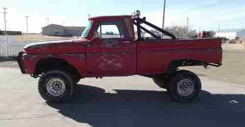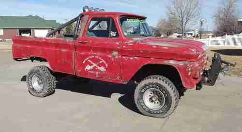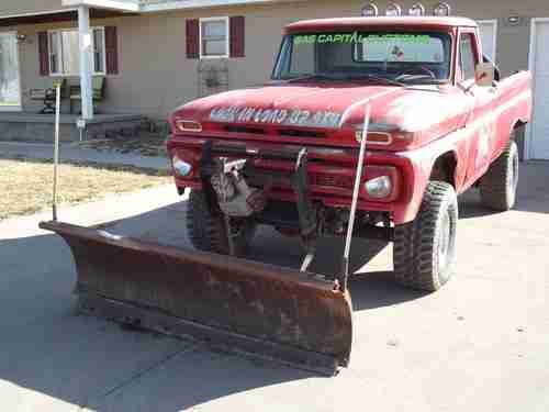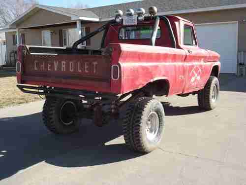 Your looking at a 1965 Chevy C-10 Pickup that has been heavily modified. The truck is now on a 1973 Blazer chassis, with front disc brakes, power steering, 350sb, Dana 44 front axle with hub locks, GM 12 bolt with a spool, 4 speed transmission. I just installed new floorpans, new body bushings, and new suspension bushings. We also just got done with 4 linking the rear end, and this truck handles like a dream off road. The 4 link soaks up any and all ruts, bumps, and holes. The rear axle has been moved back from the stock position to have great departure angles. The rear was left high, as I planned to add 6" leaf springs in the front and never got around to it. It has 4" rancho springs in the front now, all with brand new bushings. Truck also has brand new motor mounts, new plug wires.
