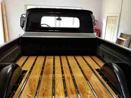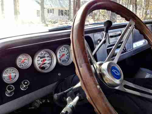 THIS IS MY 66 CHEVY C-10 PICKUP THAT HAS UNDERGONE A BODY OFF RESTORATION. FRESH SIKENS PRIMER AND PAINT. TWO TONE CORTEZ SILVER WITH A BLACK TOP. ALL NEW WEATHER STRIPPING AND WINDOW FELT. THE MOTOR AND DRIVETRAIN ARE FROM AN EARLY 1990's SILVERADO WITH APPX. 52800 MILES. THIS IS A THROTTLE BODY MOTOR ATTACHED TO A FOUR WHEEL DRIVE TRANNY. NEW EDLEBROCK ALUMINUM HEADS, HEADMAN HEADERS AND NEW MAGNAFLOW DUEL EXHAUST. NEW CHROME VALVE COVERS AIR CLEANER CLEANED UP UNDER THE HOOD. POWER DISC BRAKES. THE FRAME IS A LATE 1970's WITH A BRAND NEW ROUGH COUNTRY SUSPENTION. ALL NEW AUTO METER GAUGES. BRAND NEW OAK BED. BRAND NEW 17 INCH XP WHEELS WITH NEW 35 INCH NITTO TRAIL GRAPPLER TIRES. NEW CARPET. NEW WARN HUBS.
