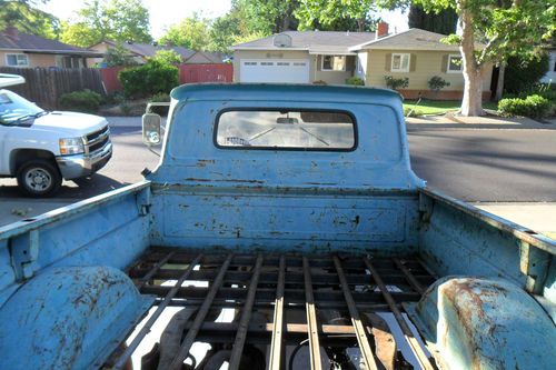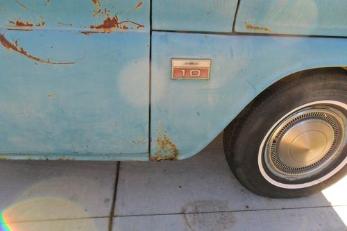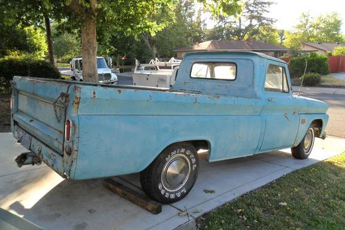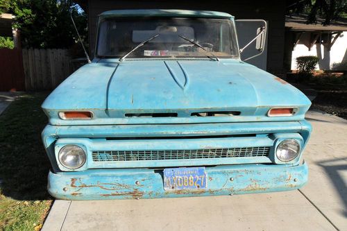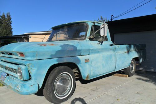 1966 C10 PICKUP , THE ONLY ROT I HAVE FOUND IS IN THE BOTTOM OF THE FRONT FENDERS AND A PIN HOLE IN THE FLOORBOARD. THERE ARE A FEW IN PASSENGER ROCKER PANEL. THE BODY IS PRETTY DAM STRAIGHT. IT RUNS STOPS AND DRIVES, BUT NEEDS SOME TLC. THIS TRUCK IS A PROJECT. DONT THINK YOU CAN BUY IT AND ITS GOING TO BE A DRIVER WITH OUT SOME WORK...I BOUGHT IT FROM A FAMILY MEMBER OF THE DECEASED OWNER. TITLE WAS LOST. HAVE AFFIDAVIT FOR TRANSFER WITHOUT PROBATE. I HAVE A COPY OF DEATH CERTIFICATE . THERE IS ABOUT 550.00 OWED IN BACK FEES TO THE DMV. IF SOLD OUT OF THE STATE OF CALIFORNA I DONT THINK THE FEES APPLY....THIS IS A GOOD START TO A COOL OLD TRUCK...........LOOK AT PICS........714 743 5216 DAN.. CALL IF YOU HAVE QUESTIONS ....THANKS .....LIKE I SAID, THIS IS A CLEAN OLD PICKUP. ALL IT NEEDS IS A NEW OWNER AND MAKE HOW YOU WANT IT...........THERE IS NO RESERVE...........''HOT ROD RAT ROD CLASSIC BAGGED LOW RIDER STOCK''....THE TRUCK IS UP FOR SALE LOCALLY. IF THERE IS ONE BID I WILL NOT PULL TRUCK FROM EBAY....