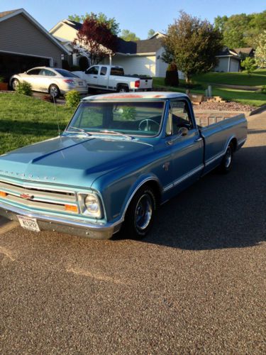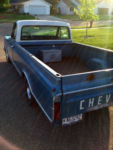 1967 C10, factory 327 truck with Holley 750 carb and a vintage CB4 edelbrock intake. with Turbo 400. This truck has been not been restored but has been cleaned up and made into a great patina daily driver. This is a true "custom" trim with the trim and chrome in the right places. The fuel tank has been removed from inside the cab and a summit fuel cell was installed under the bed. The engine was rebuilt prior to me owning the truck approx. 1500 miles on it. Has dual flowmaster 44's. Has BF Goodrich 265's in the front and 295's in the rear. The suspension has been lowered in front and rear. The suspension remains stock. The floor pan has been repaired where there was rust holes, both rockers were replaced. Dynamat was laid on the floor with new vinyl floor installed. Seat has been re-done, new dash pad installed. Installed Retro Sound model 2 radio that has Bluetooth (very cool) New retro sound center speaker "dual coil" installed along with 2 lower pioneer kick panel speakers added. Amp runs the lower front kick panel speakers and a separate amp runs a 10 inch sub behind the seat. Old vintage beer cooler bolted in rear bed for a tool box. I like the look of no rear bumper, but that is the only reason why it is not there, I do not have one that goes with truck. True miles is unknown do the age of this vehicle. This truck is a blast to drive and of course looks great going down the road. Serious bidders only, I have this truck listed locally and I reserve the right to end the auction early. Please let know if you have any questions!! I will be sad to see this go! This is a old used truck and has many imperfections, but that is what makes it so cool.