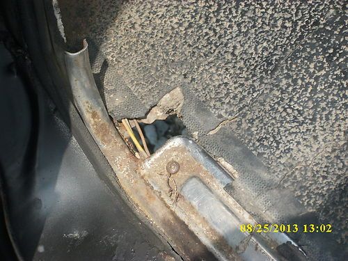 The interior is all there, of course one of the previous owners hacked a hole in the dash for a cd player but there is a cover panel over it. The seat is just that, a seat. it will need recovering and a little padding replaced. Seatbelts are intact. Windows roll up and down, wipers, turn signals, headlights,, even the horn, they all work. It does need a windshiled. There is a small rust through on the drivers floorboard near the door opening. Nothing major.