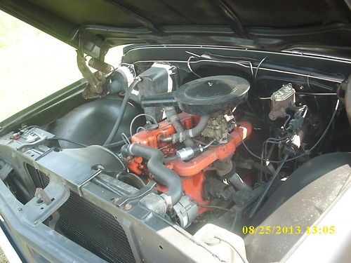 This is a fun little truck. It does have its issues, just like all of them do, but they are nothing that keep it from being a cool little driver. It starts, runs, steers and stops as it should. It does ride a little rough, it has been lowered and GMC trucks are leaf sprung, they don't ride as well as Chevy C10 trucks do with the coil spring set up in the rear. The little 250 just putts down the road with no problems. It will never win any speed contests but the whole time you are driving it, you have a big grin on your face. The transmission shifts smoothly, no slop or binding on the linkage. It is unmolested under the hood. The factory air cleaner is intact with all hoses still attatched. Points type distributor fires right up and does not miss a beat.