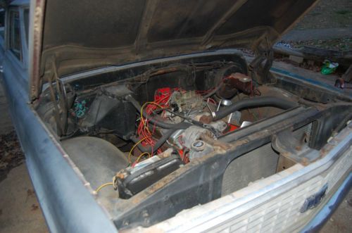 This is a rat rod project truck with a six inch chopped top and a static five and seven inch drop. all work was done before I purchased the truck, it has rust in the usual places yet the body is in really good shape as you can see in the pictures. It has a small block 355 with an Erson cam the runs really well, fires up and runs with no trouble, has an edelbrock with electric choke, the only things not yet replaced in the brake system is the brake lines everything else is new. Wheels are thrown on it to mock up and move around in the yard, it needs to be restored but is a great start. the only missing items that I'm aware of are the door panels and the drivers side quarter window plus the drivers side windo still needs to be cut down to fit the top. |