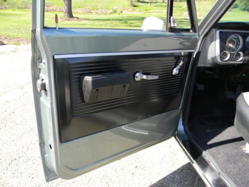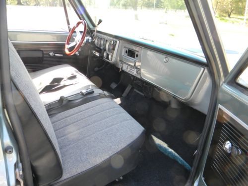 1969 Chevrolet C10 SWB, California Pro Tour Custom Truck, Frame Off Rotisserie every nut & bolt, began its life as a longbed, customized by Flanders Custom Works in Sacramento, California, rust free. lowered, shaved (gutter rails, side markers), frame shortened, bed shortened and molded into a beautiful work of Art......Frame media blasted and painted in Chasis Black.... Beautiful Sikkens Base Coat, Seafoam Green Metalic, Clear Coat, Gorgeous Finished Product, Wet Sanded and Buffed..... 454 Ci Engine, Large Hydraulic Cam matched to the Heads, Springs and Intake 4' / 2" Drop, new springs, shocks Hooker Headers 40 Series FlowMasters with 3" Exhaust Edlebrock Performer Intake Holley 750 Double Pumper Turbo 400 Transmission, brand new with less than 200 miles 4.11 Rearend, Light to Light extremely quick... Power Disc Brakes Front, Rear Drums 5 Lug Rally Sport Rimes and Center Caps Wilwood Proportion Valve Rhino Lined *Underside Cab & Bed *Interior Sound Proofed *Fender Wells *Cab Steel Cowl Hood Custom Molded Rear Pan New Front Chrome Bumper New Front Grille All New Rubber Kit and Felts (all windows, doors windshield and rear glass) New Carpet New Dash Pad Re-Upholstered Original Bench Seat Factory GM Seatbelts plus center belt set-up Billet Mohaganny Steering Wheel, Stainless Horn tab New Tail Light Lenses New Body Bushings Bolt/Nut Kit New Control Arm Bushings Lowers and Uppers 4-Core Radiator New Rear 5 Lug Performance Axles This Truck is a head turner that will not disappoint, very quick and powerful, a lot of fun to drive, will throw you back in the seat quickly..... Driven less than 150 miles since Frame Off Restoration. Runs excellent and a Color combination that has the looker's asking where did you find that color??? Beautiful show winner!!!!! Extremely quick, light to light, acceleration is instantaneous with the Big Block backed by the 400 Turbo Trannsmission... Dream Car for many, enjoy the pic's and feel free to contact me with any questions, (916) 402-1836 Mitch |