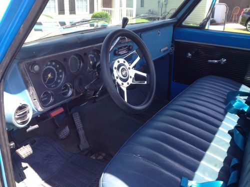You are bidding a 1970 Chevrolet C/10 Pickup. The truck sports 51,000 original miles on this 3 owner truck. It has a 350 cubic inch 2 barrel Turbo 350. all factory stock. New dual exhaust with flow master mufflers and polished tips. New disc Brakes front and pads in the rear., complete new front end rebuilt including control arm bushings ect. Fresh alignment and new tires and shocks up front. 5 lug rally rims with trim rings and center caps. Truck drives straight as an arrow down the road. All gauges work as they should. Solid body and floors and bed. New weather strips and sill plates and glove box liner. Stock radio is there but not hooked up. Was going to put a head unit in glove box. Truck has air conditioning with new ducting and vents installed. Paint is okay but not what I would call show quality. Looks good from a distance and shines pretty good. Air did work had to order a new blower switch which I will install, which should fix the problem. Tilt Column with custom steering wheel. New sending unit in the tank as well.Truck was our shop truck and its real reliable runs outstanding. Interior needs the dash pad recovered ( I have material to do it) and needs carpet and or rubber mat for the floor. Seat is presentable with normal wear on the drivers side. Bid to win! Any questions feel free to ask.