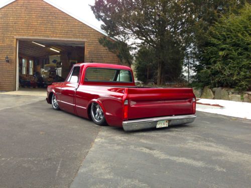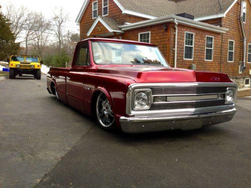 fully customized 1970 chevy c10 on top of the line air ride system 6 link rear end disc breaks freshly built chevy 350 motor Muncie 4 speed transmission beautiful custom paint job house of colors brandywine red everything is shaved has door poppers beautiful custom wood bed 22 inch wheels in the rear 20 inch in the front true dual exhaust if you would like to set up a time to see the truck you can reach me at 781-775 8two80