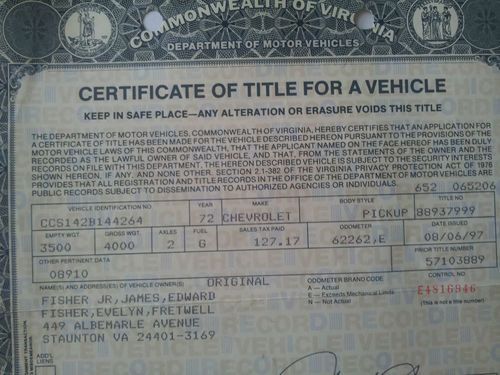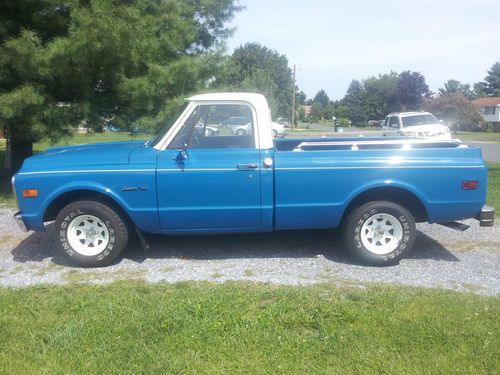 VERY NICE TRUCK RUNS AND DRIVES VERY GOOD. STARTS VERY EASY. HAS 350 ENGINE 3 SPEED ON THE COLUMN 400 TURBO TRANSMISSION. PERFECT INTERIOR NEW PLUGS AND WIRES AND ALTENATOR. VERY MINOR RUST PICTURED ON BOTTOM OF DRIVER DOOR. VERY LITTLE DAMAGE ON PASSENGER SIDE FENTER (HIT SIDE OF GARAGE DOOR) HAVE NEW FENDER AND C10 EMBLEM TO GO WITH TRUCK BUT REALLY DOESNT NEED IT COULD JUST BE TOUCHED UP. ALSO HAVE NEW HEADLIGHT AND GRILL COVERS TO GO WITH THE TRUCK. TRUCK LOOKS REALLY GOOD AND DRIVES PERFECT WOULD TRUST TO DRIVE ANYPLACE. TRUCK HAS BEEN GARAGE KEPT FOR PAST 20 YEARS. TRUCK HAS NEVER BEEN WRECKED EXCEPT FOR THE GARAGE DOOR MENTIONED ABOVE. ANY QUESTIONS PLEASE CONTACT ME. I HAVE CLEAR VIRGINIA TITLE. IF YOU WANT A REALLY NICE TRUCK READY TO ENJOY DRIVING THEN THIS IS THE TRUCK FOR YOU HAPPY BIDDING. BUYER MAY HAVE ITEM SHIPPED ALL COSTS FOR SHIPPING TO BE PAID BY BUYER. USHIP.COM IS A GREAT WAY TO HAVE ITEM SHIPPED IF NEEDED.