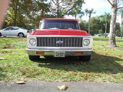 UP FOR SALE IS A BEAUTIFUL RED 1972 CHEVY TRUCK. IT HAS 86??? ORIGINAL MILES. IT HAS A 350/TH350/12 BOLT POSI COMBO WITH LESS THAN 10,000 MILES ON EVERYTHING. IT HAS A MILD CAM, EDELBROCK CARB INTAKE AND A REBUILT HEI DIST. ITS A FACTORY AIR CAB WITH A BIG BACK GLASS, P/S, P/B AND FACTORY TILT WHEEL. IT HAS A SONY CD PLAYER, NEW MODEL BENCH SEAT WITH AN ARM REST, LED CAB LIGHTING, BED LINED UNDER CARRIAGE, TONNEAU COVER, TINTED WINDOWS AND TRUE DUALS WITH FLOWMASTERS. IT HAS ALL NEW BRAKES FROM FRONT TO REAR. BOOSTER, PADS, SHOES CALIPERS, EVERYTHING- ALL NEW. EVEN THE FLUID! THE CAB AND FRONT CLIP ARE ALL METAL. ONLY A SKIM COAT OF FILLER FOR FINAL SANDING. IT HAS FRESH BEAUTIFUL RADIANT EFX RED PEARL PAINT WITH 5 COATS OF CLEAR. ITS DETAILED UNDER THE HOOD AS WELL. NOT PERFECT BUT EXTREMELY CLEAN. IT HAS A BEDLINED 1996 SHORT NARROW BED WITH ZR1 TAILIGHTS IN THE ROLL PAN. ITS BEEN LOWERED TASTEFULLY AND RIDES LIKE A DREAM, WITH A FRESH ALIGNMENT, ON NEW (LESS THAN 1000 MILES) 295/50/15 TIRES AND 10 INCH WHEELS. THIS TRUCK IS NO TRAILER QUEEN, ITS A DRIVER AND IT DEMANDS ATTENTION WHERE EVER IT GOES. I HAVE A RESERVE BUT ITS NOT OVER THE TOP AT ALL. IF YOU HAVE ANY QUESTIONS, FEEL FREE TO CALL ME FOR MORE INFO. 386-682-7661. THANK YOU FOR LOOKING AND HAPPY BIDDING.