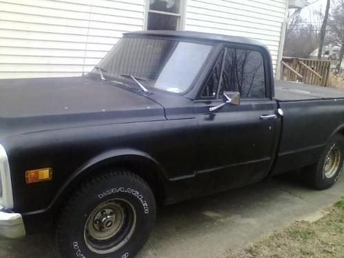 This is a solid 1972 Chevy C10 long bed, it has a 308 in it and the 3 speed was moved from the steering to the floor. This truck does run and starts on a dime! I am a guy who is chasing a dream and I don't want to see my truck go, but it has to go. This truck has little to no rust at all. There has been a little work under the hood, pipes, ect. This is a great work truck or a truck to build on. It has all original miles under the hood. There are new pipes, tires, tinted windows, cd player and speakers, new lights and all the lights work. Everything other than that is the original truck.