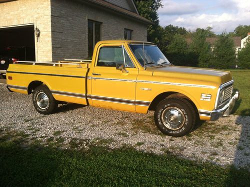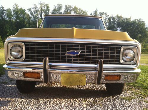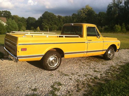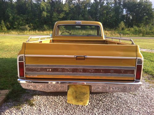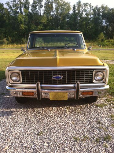 Original 1972 Chevy just under 100,000 original miles. Original 350 motor and automatic transmition. Front wheel disc brakes. Rides very good. Drove it back from North Carolina myself April of this year. Trust it to go anywhere. This is not a show truck but could be. Some of the flaws are: the tailgate dosn't lock but it does stay up, drivers seat has a tear in two seams, hood is slightly sun faded, drivers door has been repalced and color is slightly off. This truck is solid. For a faster response to any questions email me at FBHD03@aol.com.