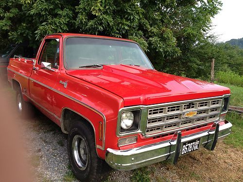 1977 chevy c10 Silverado 350 engine,pb,a/c,cruise,tilt,am/fm radio all factory dual gas tanks short bed alum intake,long tube headers, elderbrock carb.approx. 80,000 miles numbers matching truck some rust at usual places for this model but not bad cowl hood