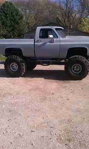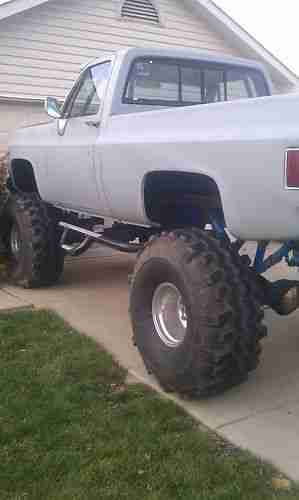 1977 chevy short bed 4x4. Has 454 with comp cam 268 kit, noisy gear drive,770 holley truck carb, hooker headers,new ture dual with flow masters,400 trans,rebuilt transfer case. Has 12 inch suspension lift and 3 inch body. Has newer model 6 lug axles with 456 gears. Brand new 0 miles 44x18.5x15 tsl super swamper tires on 15x14 mickey thompson polished classics. Hole truck is 98% rust free and very clean. Has a hydraulic tilt bed with a heavy custom built frame and has a new roll cage installed in the cab.