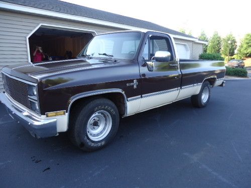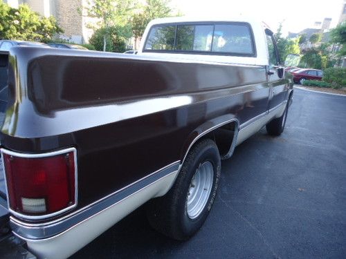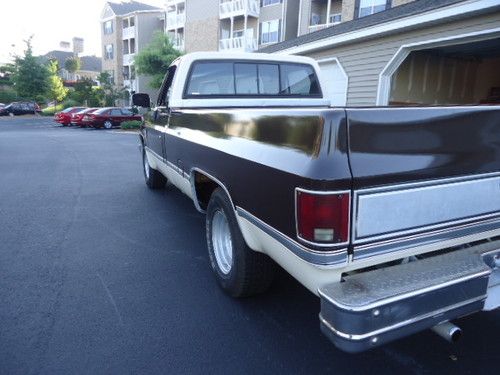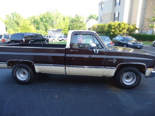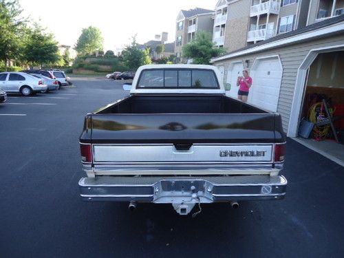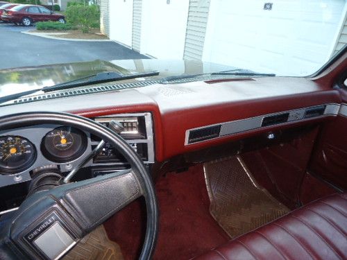 this is a very nice running and driving truck i am selling. runs great shifts great and rides nice. has no rips in the seat and carpet is in great shape. ac works and blows cold. the 350 engine was rebuilt in 04 and has about 7000 miles since then. the 350 trans was replaced with a new 700r4 overdrive so hiway trips are much nicer. it runs 75 down the interstate with no probs. it was repainted the original colors and the body it in great shape. there is no rust anywhere. it has duel exhaust but needs a manifold gasket. has a 4 barrel carb new battery and new tires. it has a cd player and speakers. it is a great running truck inside and out i just dont need a 2nd truck and dont have room to store it.
