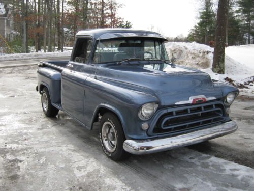 For sale is a nice 1957 chevrolet 3100 pickup.2 wheel drive.This was a 2 year project of mine.This is a real nice driver with original floors,Frame is perfect. Almost everything is new including