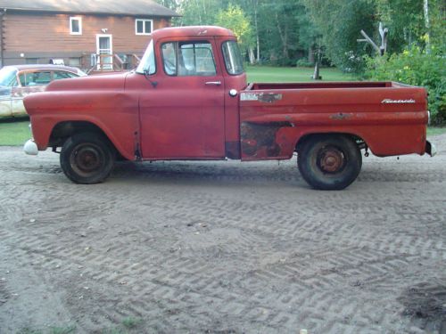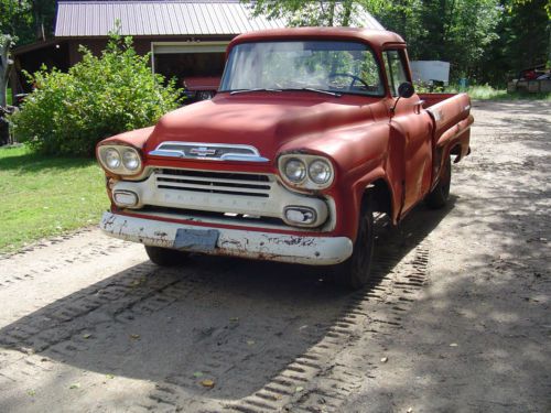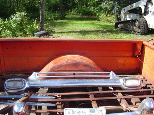 1959 Chevy 1/2 ton fleetside short box big back window pickup! Great restoration project. I have a very nice chrome grill and bumper in the box of the truck that goes with this sale. Box has no rust holes, but it does have some dents and dings. Tailgate is rusty. Truck needs cab corners, floor pan work,front cab mounts are starting to rust. Truck is complete except for the engine and transmission. Please look at all the pictures....Any questions please call 218-308-1852. I do require a immediate down payment of $500 Via Pay Pal if you hit buy it now or make an offer and I accept it. Remaining balance due within 3 days. If you do not have the money to purchase this item please don't waste my time or yours. If for any reason these terms don't work for you please contact my prior to bidding or making an offer so we can make other arrangements that work for you. Thank you for looking at my auctions! Yes I have a clear title in hand. |