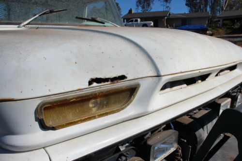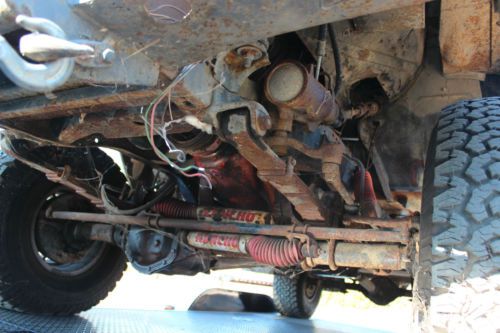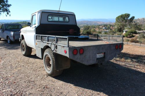 You are looking at a 1965 GMC 4x4 Short bed. It is 4wd and original short bed. It has a 350 engine that is built, very few miles, has new Edelbrock carburetor. Aluminum intake HEI distributor, block hugger headers with a nice exhaust system, Flow Master mufflers. Manual trans, new BFG 33 inch tires and turbine wheels. The body is pretty straight their are a couple dents and some rust in the drip rail and bottom of the door and some in the front of the hood. None in the rockers and the floor. Truck has a sun roof. Has a very nice fabricated steel flat bed with custom gas tank under the bed. Custom locking side tool boxes built into bed. Custom front and rear bumper. Front bumper has a Warn 8000 # winch Truck is not running, has rust in the gas tank. It will run off a can of gas. Thanks for looking Glenn 760-315-1363 |