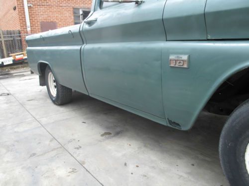 UP FOR SALE IS A NICE SOLID 66 CHEVY PICK UP THIS TRUCK SPENT ALL OF ITS LIFE IN SUNNY DRY CALIFORNIA. THE BODY IS IN REALLY GOOD SHAPE FOR A 48 YEAR OLD TRUCK. IT COMES WITH A SIX CYLINDER THREE SPEED THE TRUCK QUIT RUNNING A FEW MONTHS BACK AND NOBODY EVER GOT AROUND TO LOOKING AT IT. THIS WOULD MAKE A PERFECT STARTING POINT TO BUILD YOURSELF A COOL OLD TRUCK. THE RESERVE IS LOW CAN SHIP WORLWIDE HAVE MANY CONTACTS IN THE SHIPPING BUSINESS THANKS FOR TAKING THE TIME TO CHECK OUT MY AUCTION. TRUCK LOCATED 10 MILES FROM LAX AIRPORT |