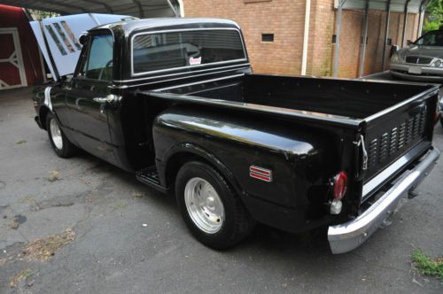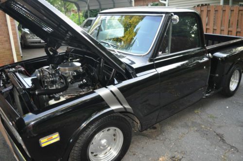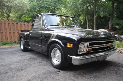 1968 CHEVY STEPSIDE 2wd shortbed pickup. This truck is amazing. Lets start with a worked chevy 350 hp engine. completely worked over. Has oversize cam and lots of upgrades. Brand new Edelbrock 1406 carb. Performance aluminum Heads. lots of billet and chrome. Dual exhaust. engine compartment is detailed and clean. Interior is very nice. Newer style bench seat. Tach, billet shifter. tinted windows. aftermarket Air Conditioning installed. AmFm Stereo. Automatic transmission as like new. Has a nice stepside bed with a good wood floor. Could use a light coat of paint on the wood fillers.... All body panels are straight and fit nice. Chrome is nice. This truck has a ton of quality work done to it. ....exceptional Vehicle!