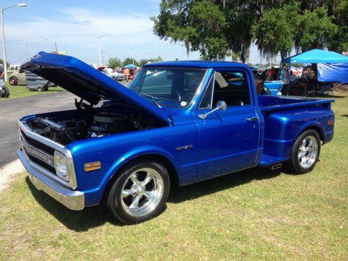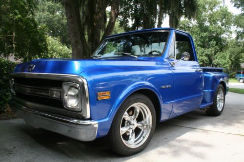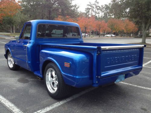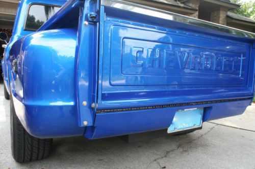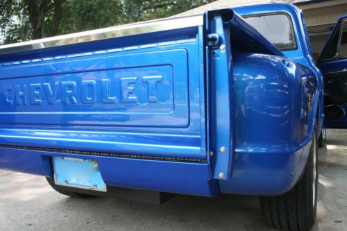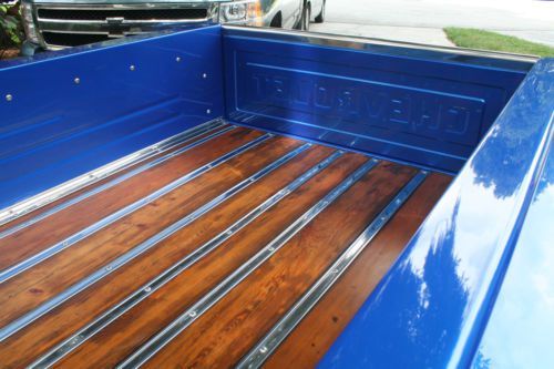 Frame off restoration in 2005. Very solid driver on the street or Hwy. See you tube video: Everything on this truck has been replaced from front to rear. The paint is a GM pearl blue. Custom gas tank filler in rear fender side light. Custom power antenna in rear fender. Roll pan with led lights. 15 gallon tank in rear. The Interior has dyno matt with new carpet. Seat is a 1990 chevy truck 60/40 recovered in apr. 2014 It has been lowered 2". All new wiring, AC controls are stock location, no extra junk or add ons. Nice sound system with amp and Alpine 6x9's in door. All stock gauges in working condition. Interior light. door locks. Engine is 400hp 454 GM performance crate engine. Engine will run cool with the a/c no problem. Holley 670 Street Avenger Carburetor. Coated long tube headers. Power master mini starter. 700R4 Automatic with overdrive. 12 Bolt Rear with 3:73 posi. GM 4 wheel power disk brakes Power Steering Vintage Heat/AC Tinted Power Windows New 18" American Racing Wheels 9" Rears - 8" Fronts 19,500. OBO May Trade 904-591-7467 Jax, Fl. Ryan |
