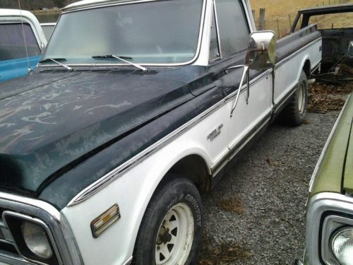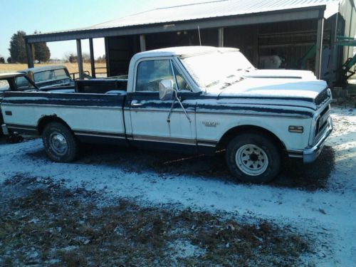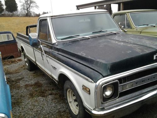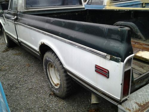 1970 chevy truck longbed, CST/10 PACKAGE 350 SBC ENGINE STOCK WITH FRESH REBUILT FACTORY QUADRAJET CARBURETOR 350 AUTOMATIC TRANS MISSION FACTORY A/C CAB NEEDS COMPRESSOR FOR COMPLETE SYSTEM FACTORY TACH DASH FACTORY WOOD BED NEEDS REPLACED TRUCKS RUNS WELL,JUST NEEDS SOME TLC HAS LATE MODEL WHEELS .6 LUG POWER STEERING,POWER DRUM BRAKES DOES COME WITH TAILGATE NOT PICTURED . was barn find vehicle,runs and drives WELL , NEEDS PATCH PANELS ABOVE REAR WHEEL ARCHES NICE DRIVER QUALITY TRUCK