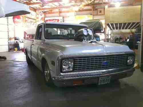 Up for auction is my prostreet 1971 Chevy fleetside tubbed short box that I have owned for 17+ years...the big block and 671 blower and transmission has less than 2k miles.The blower is under driven and 336 rearend gears which lets it roll down the highway at very low rpm and always runs cool. It is equipped w/ MSD distributor and coil/ 2 holley 750 carbs/Tranny is a turbo 400/ 12 bolt rear end w/ moser axles.It has the weld rodlite wheels 15x6 on front w/205-75-15 tires and15x14 w/ 31-18.50-15 Mickey Thompson's on the rear. Nice driver and a rust free truck.....w/ over 15k in motor and blower alone.......call Randy at 720-231-5619 with any questions...thanks