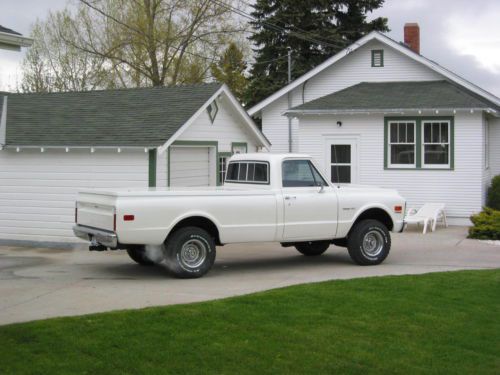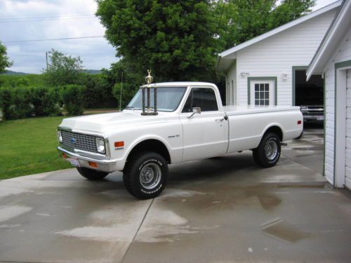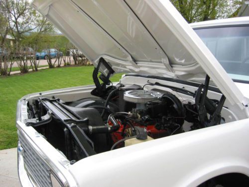 1972 Chevy 4x4 1/2 ton pickup has rebuilt 350 engine and rebuilt transfer case and rebuilt manual transmission. The interior is all new, seats carpet dash, instrument panel. The am/fm cassette and cd player is new with the 6 cd player below the seat. The box is Rhino lined and the box has a fiberglass Tonneau cover from Gaylord Truck Lids. All new glass and interior door handles and cranks. New tires BF Goodrich with rally sport rims. This truck has been garaged since it was restored and driven only at car shows. This truck has many car show trophies. This truck is for sale privately, first come first serve. for more info. email sigsppd@rushmore.com