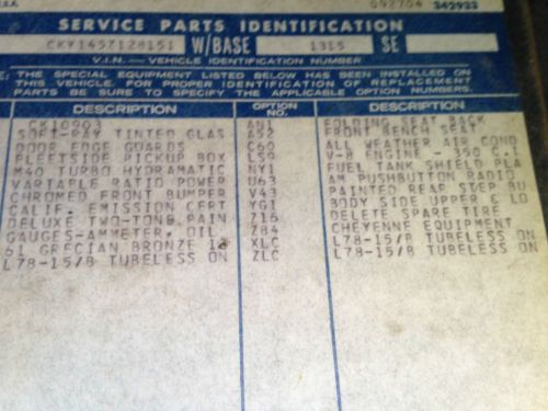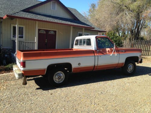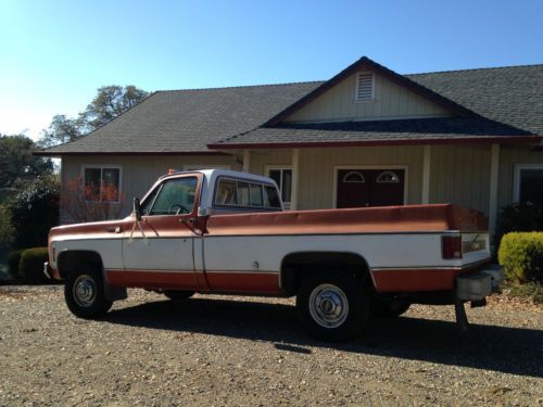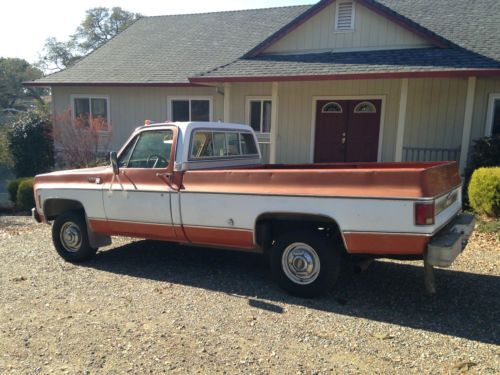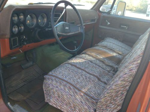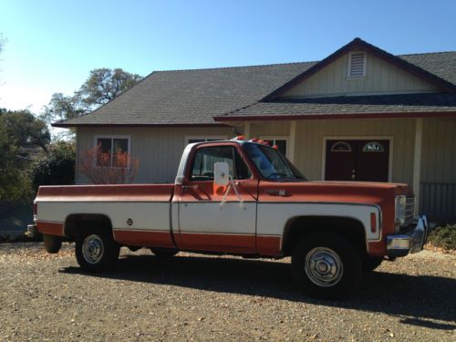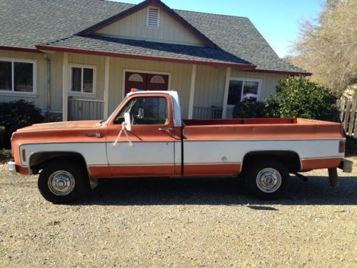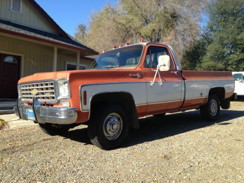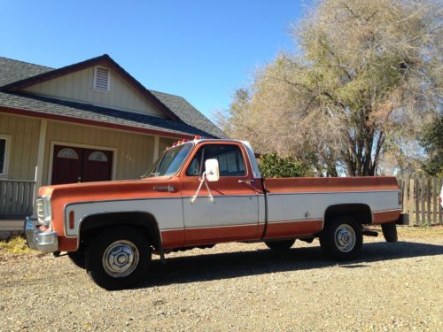 Up for auction is a 1975 Chevy Cheyenne 4x4.This 1 owner truck has been in CA since new so the body and frame are 99% rust free. She is well optioned with 5.7 350 v8, turbo 400 auto trans, p/s A/C. The body is very straight it does have a few dings the paint is all original. The interior is in good shape for the year. This truck has been very well maintained. She drives good every thing works even the a/c. The windshield has a crack (been that way for years. I have the original books and title. I can help you with shipping if you need it. Please email or call 740-404-6411 with any ?