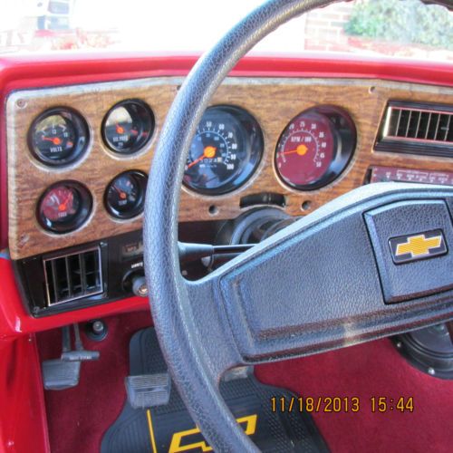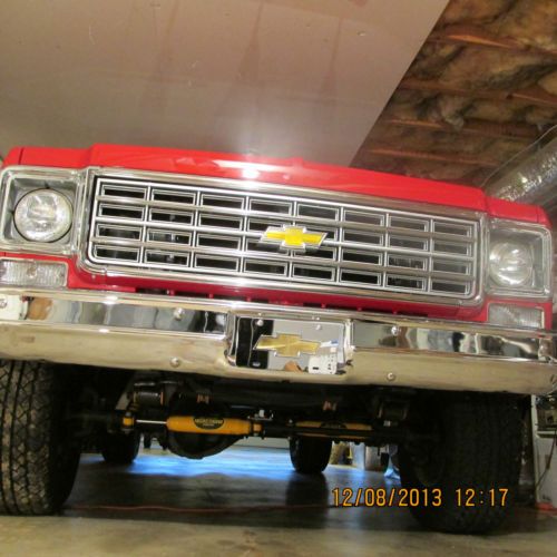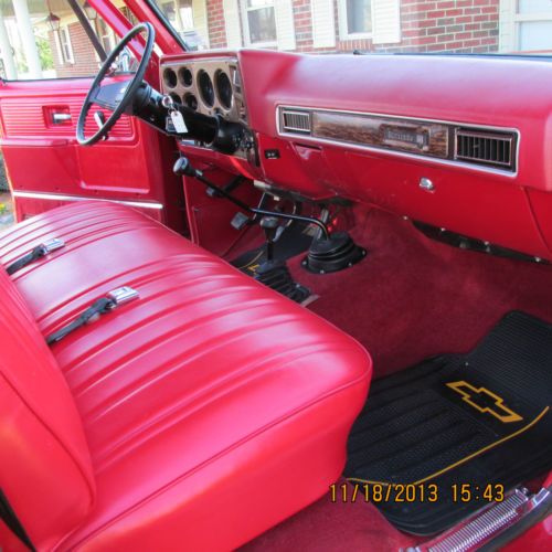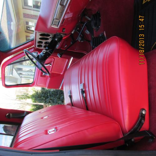 1976 Chevy 4WD Stepside P/UP Color: Victory Red Interior: Red Mileage 3020 Complete off frame restoration; Frame totally sandblasted and painted w/zinc chromate, 2nd coat w/black 'Emron' paint. Body,rear axle, transfer case and trans. have matching numbers. Suspension: New front dual "Heckelthorn" front shocks and strg.dampner. Rear aux. springs, frt. stabilizer bar, frt.and rr springs W/new Urethane Bushings. All new body and rad. hold down cushions, new eng. and trans.mounts. Power Train: New 350 GM 'Crate' engine (2900 miles), new alternator, starter, spark plugs and wires, radiator, a/c condensor, a/c dehydrator bottle, clutch fan, all hoses,drive belts, prop. shaft universal bearings,harmonic balancer pully, a/c compressor w/3yr. mfg. warranty, a/c evaporator core, htr. core, and pwr. strg. pump. New frt. wheel bearings and 4wd lock out hubs cleaned and repacked. Original transfer case and trans.took down and resealed.New clutch, pressure plate and throw-out bearing. Positraction axle. Factory dual exhausts w/new heat risers. Original 4 bbl quadra jet carb. and distributor original- carb. rebuilt. New wt/ltr Bridgestone tires(32X11.50R 15LT)and rally wheels. Sheetmetal: New frt. and rr. fndrs,bumpers, box, hood, doors and grill w/trim. New hood springs, brackets and hood pad insulator. Body: Cab is original,new door hinges,body door locks, all new glass, new doors w/all new dr. interior wd/regulators and exterior hardware, new elect. GM rear sliding glass, new stl.steel o/s r/v mirrows, all new interior W/new Am-Fm c. radio. New inst. cluster gages and instr pnl pad. Tilt strg.,new seat belts, new carpet,new heater mtr fan and new wshr/wiper motor. Box: New kiln dried oak boarding,w/seasoned linseed oil, w/polished stl. steel trim and fastners. New tail lites, cargo lamp and halogen headlamps. Note: All sheetmetal parts, cab, fndrs., doors, box and hood were 1st painted separate then assembled. Just like factory. $40,000 Plus invested. 865-674-2624 865-712-4122 |