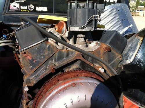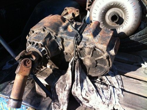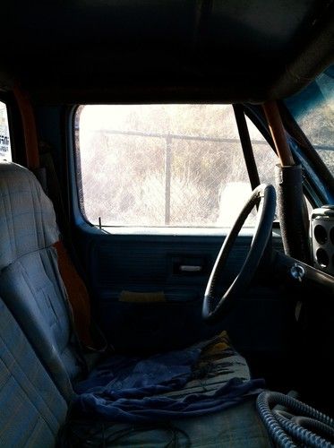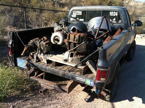 The engine, transmission and transfer case are out of the truck and sitting in the bed. The interior bench seat is shot and would probably need to be redone. There isn't a clutch (that's the only thing missing). The body is relatively straight with a few trail dings and bruises and very little rust in the typical places. The frame has been welded with a steering box support plate. The interior roll cage is only welded to the floor, it is NOT tied into the frame. The tires hold air but need to be replaced. This is a project truck or it could be a doner for the trans & NP205. I'm not sure but I would think that the transmission should be gone through only because it has been sitting exposed for some time now. It shifted and worked perfect when I pulled it. The top plate on the trans where the stick enters the trans has a broken lip at the roll pin that retains the stick. That should be replaced but I used a couple of hose clamps to get by for a while. It has the basic 10 bolt, C clip axles - nothing special. Manual front hubs.