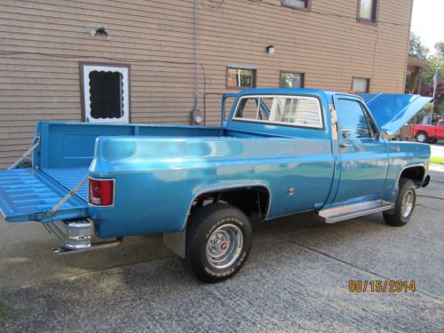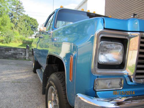 1978 Chevrolet Scottsdale 4 wd with 92,000 original miles in good condition. Original drivetrain, 350 engine. 4 speed. RE-stored about 12 years ago. New fenders, inner fenders, doors, bumpers. Bed came from the south. Square headlights replaced the original round ones