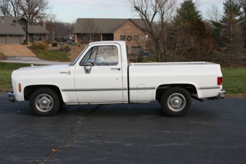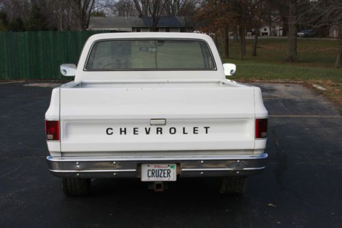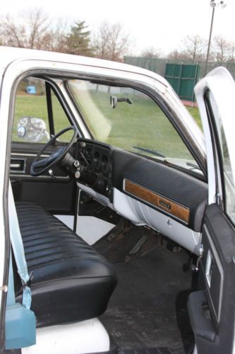 This truck has only 67,000 original miles. It has a professionally reconditioned turbo 350 transmission from Al's transmission in Edwardsville. It also has new BF Goodrich radial T/A's on corvette wheels. The truck will also come with the original factory rally wheels not shown a Pioneer am/fm cd player and tilt wheel. It does not have air conditioning. This truck has been lowered with Bell-tech front spindles and DJM rear spring kit. It also has a tilt steering wheel, gauge package, power steering and trailer receiver hitch.