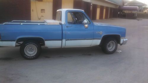 1984 SCOTTSDALE SHORTBED, PS, PB PW AND A/C ALL WORKING... HAS 4 NEW TIRES, HAS 350 V8 with 103,000 MILES ON IT. AND HAS A 700R4 AUTO TRANS..... A SOUTH CAROLINA TRUCK.... ORG. PAINT...... BED RUNNERS ARE NOT BENT OR FLAT..... NEVER HAULED ANYTHING HEAVY IN BED....GREAT TRUCK TO REDO