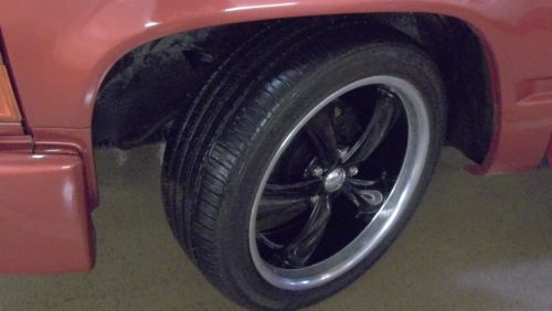 1995 Chevy Pickup custom, lowered 3" , V6 Vortec 4.3 liter engine, 5 speed trans, short 6' bed, new chevy burned red paint, new all steeel hood, custom exhaust, new 20" Boss American Racing Wheels, New Eagle RSA tires, 245 45 20" in front and 255 45 20" in the back. LED Tail Lights , bed liner spray, Custom Interior, Bucket Seats Leather, power driver side seat , AM FM Cassette. This truck is in great condition and it is a lot of fun, strong running truck, well maintained, it 's ready for the summer. If you need aditional pictures or information call 847-532-0829. This was a father and son project ,they did a nice job now working on a older Truck. Bid with confidence it runs good and is well worth the investment.