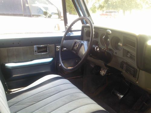 400 TURBO TRANSMISSION JUST INSTALLED. TRUCK IS BY NO MEANS PERFECT, IT IS NO WHERE NEAR A SHOW TRUCK - IT WAS JUST BUILT TO LOOK GOOD AND BE NOTICED GOING DOWN THE ROAD (WHICH IT DOES - I STOPPED TO PUT GAS IN IT AND EVERYONE WANTS TO TALK ABOUT IT OR COMMENT HOW COOL IT IS)...THE BODY HAS A NUMBER OF SMALL DENTS, THE PAINT IS NOT PERFECT (LOOKS GOOD FROM A DISTANCE), CRUISE CONTROL / WIPERS NOT WORKING (DON'T KNOW IF THEY'RE NOT HOOKED UP OR DON'T WORK). NO AC - BUT CAN BE EASILY ADDED TO THESE OLDER TRUCKS. FAN SEEMS TO BLOW UNDER THE DASH (HAS COOLED TRUCK IN SUMMER). I WAS TOLD THE STARTER WIRING IS CLOSE TO THE HEADERS BY THE MECHANIC THAT PUT IN THE TRANSMISSION AND SHOULD BE MOVED AT SOME POINT (NOT SURE HOW SIMPLE THAT IS). CURRENTLY AT MY HOME WITH A FLAT BATTERY FROM SITTING (I WAS TOLD BATTERY WAS NEW). WHEN PICKING UP BRING JUMPER CABLES! DOES RUN THOUGH - AS WITH MOST OF THESE 350 CHEVROLETS THEY ARE CHEAP TO WORK ON AND LAST FOR A LONG TIME. MILEAGE OF APPROX. 88,000 IS BELIEVED TO BE TRUE - BUT NO WAY OF KNOWING. IF I WAS GOING TO KEEP IT I WOULD SWAP OUT THE CARPET AND MAKE SURE THE WIPERS WORKED.