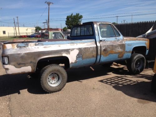 1986 Chevy 4x4...it has 4 inch Rancho suspension new springs and shocks all the way around. New Dana 44's axel front and back with 373 gears. 700r transmission with 205 transfer. The body work is 90% done. Interior needs new panels etc and it has no seat.