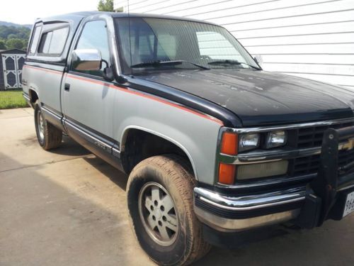 Its a 1988 chevy k1500 4x4. The truck has seen better days. It has a rough body but the interior is pretty nice. The motor has 142,000 on it. i just rebuilt the throttle body and put new brakes on the front and back. Its not a daily driver but its a good work truck. Last thing the ignition is broke so you have to start it with a screwdriver. I have the key for it just the ignition on the steering column is broke. Tires are also pretty bad and the shocks are blown.