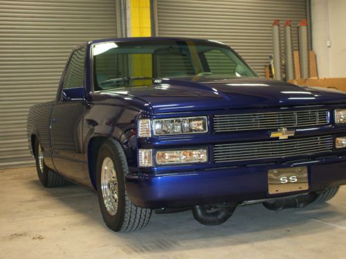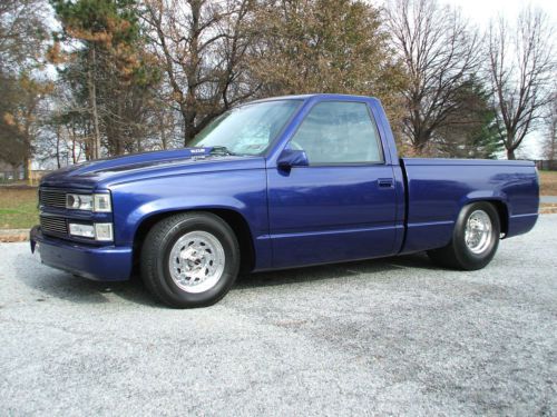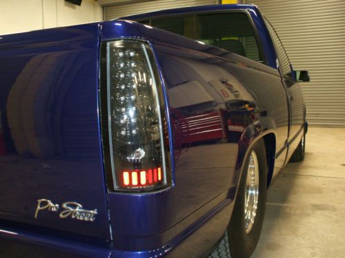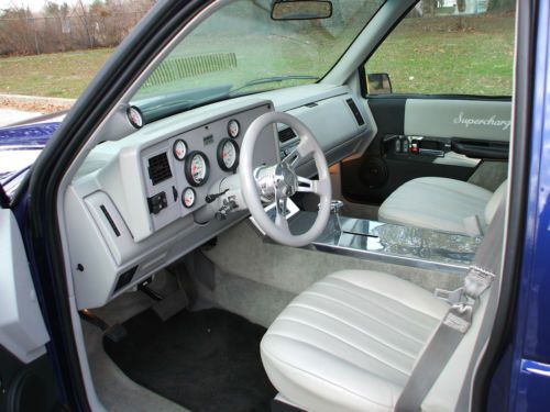 1990 ss 454 prostreet pickup totally redone all body trim, windows etc new. motor is a 468 eagle rotating assembley hp oval port heads all redone manley valves and springs. crane roller came lifters pushrods and roller rockers. innercooled procharged, transmission turbo 400 totally rebuilt monster trans kit 10 inch converter, rear is a grandnational cut down with eaton posi unit, strange axles. 1/2 inch wheel studs all 4 corners. all new interior ac housing all rebuilt dynomat in complete interior. alpine sterio system sub sounds really good. 15 bgallion fuell cell. msd, call for any more info. 215 892 5881 Jamie super nice driving and looking truck.