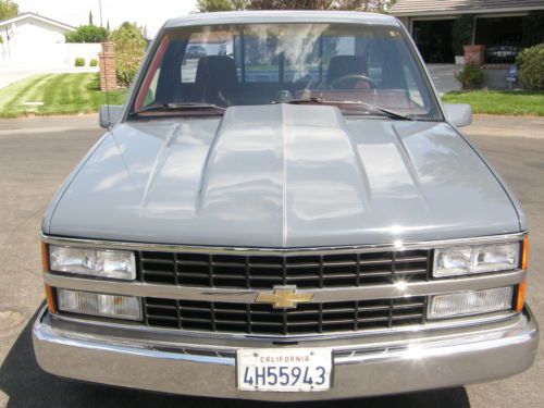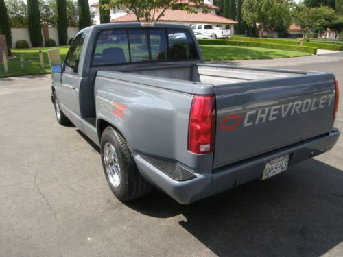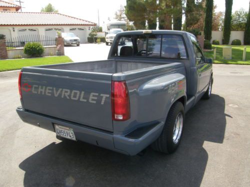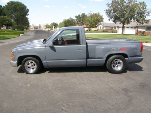 YOU ARE BIDDING ON A RARE 1990 CHEVY FACTORY SS 454 STEPSIDE TRUCK. THIS IS AN UNMOLESTED TRUCK. THE BODY IS NEAR PERFECT , THE PAINT IS GREAT, THE INTERIOR IS ALL ORIGINAL. THE DASH IS PERFECT , THE FACTORY/STEREO CASSETTE IS THERE AND WORKING GREAT , THE A/C BLOWES ICE COLD , THE TRUCK HAS ALL THE FACTORY SS OPTIONS INCLUDING POWER WINDOWS , POWER DOOR LOCKS , TILT STEERING COLUMN , CRUISE CONTROL (NOT WORKING) STEREO CASSETTE , BUCKET SEATS WITH CENTER CONSOLE , RECLINING SEATS , REAR SLIDING WINDOW. THIS HAS THE FACTORY 454 WITH A 400 TURBO TRANS AND A GEAR VENDOR / UNDER OVER DRIVE (IT WORKS GREAT). IT HAS A JACOB IGNITION. THE REAR END IS THE FACTORY SS 14 BOLT POSI. THE BED IS IN GREAT SHAPE AND THE TRUCK IS RUST FREE CALIFORNIA GROWN. THERE IS ONE CENTER CAP MISSING AND IS ON ORDER. THE TRUCK HAS DOUG THOURLY HEADERS AND ARE SMOG LEGAL. THE TRUCK IS QUICK AND DRIVES GREAT. IF YOU HAVE ANY QUESTIONS OR WOULD LIKE TO SEE THE TRUCK CALL BOB @ 661-857-3245. CALIFORNIA RESIDENTS ARE RESPONSIBLE FOR DMV FEE'S |