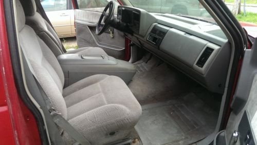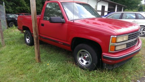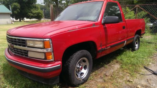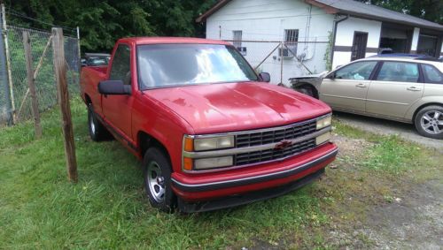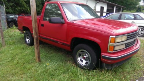You are viewing a red 1991 Chevrolet SPORT Truck that was purchased in a lot estate sale. It has been parked for awhile and is a "PROJECT" selling in AS-IS condition with a ready-to-go rebuilt title. It has dents, dings, and scratches, and currently is not running. There is some damage to the driver's door next to the fender. There appears to be previous rust to the driver's cab corner that has been patched. The clear coat is coming off in places. The exhaust appears new and replaced possibly before it was parked. The SPORT wheels and centers used typically bring $600.00 on ebay alone. The last bidder WILL own this truck, so BID-TO-WIN! 10% of the total is due immediately at the auction's end via PAYPAL, with the remaining balance due in cash upon pickup within 7 days. This truck is for sale locally and is subject to end auction if sells. Please refer all questions via telephone @ 2seven0,5nine0,four61four. Thanks, wes.
