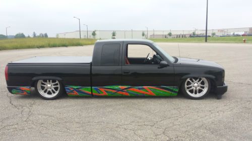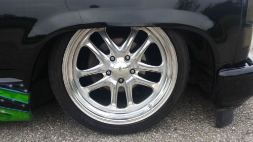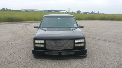 For sale is my 1991 Chevrolet Silverado 1500 street rod. Tons of money has been invested in this truck, I have over 20k in receipts. The truck originally came from Texas so the truck is 100% rust free. The build is about 10 years old and still in great shape. Runs and drives great! Body- Extended cab short bed, sierra front clip, smoothie bumper with billet inserts, Billet grille, Fiberglass Teanou cover, Bedliner, Steel roll pan, Nice black paint straight body, Custom airbrush and pinstriping, 20" Eagle Alloy rims with new tires. Suspension- Ekstensive air ride kit, 1/2" GC Xtreme valves, 1/2" copper airlines, C notched frame, KYB shocks, 3/4hp Thomas Pump, 5gal tank, Lays frame, rides great. Interior- 1996 Silverado dash with base clear paint, Lokar shifter, Billet steering wheel, tinted windows, Black leather and tweed door panels, Complete custom interior. Drivetrain- All stock, 5.7 v8 TBI, 700R4, NEW fuel pump, fuel filter, rebuilt tbi, Knock sensor, EGR valve, valve cover gaskets, cap, rotor, plugs, wires, IAC valve, Temp sensors, Custom exhaust with flowmaster muffler. Feel free to contact me at 920-253-5787 |