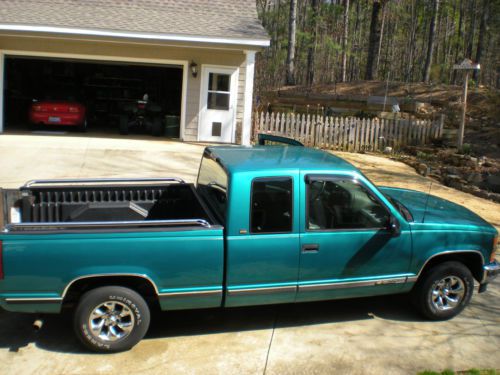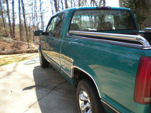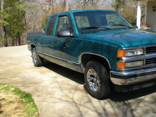 1996 Chevy CK1500 extended cab truck green, air, power steering, power windows, cruise, towing package and Tommy lift gate. Some small dings and scratches, interior good a few small places in the headliner, everything works EXCEPT the drivers interior door handle think it has come loose. Tires have a little life left, lift gate works well mileage may vary as it is driven. As is no warranty, no trades, no help selling please! Email for questions