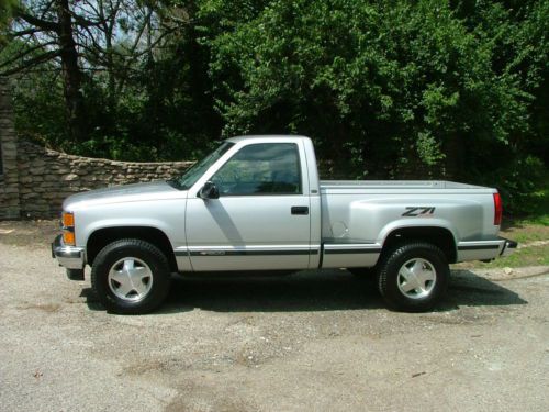 1997 CHEVY SILVERADO 1500, Z71, 4X4, 11000 ORIGINAL MILES, ALUMINUM WHEELS, NOTHING EVER HAULED IN BED, STORED IN CLIMATE CONTROLLED GARAGE, ORIGINAL GRILLE NEW STILL IN BOX, ZEIBARTED AFTER PURCHASE. ORDERED NEW IN AUG. OF 1996. MINT CONDITION INSIDE AND OUT. NON SMOKER, EQUIPPED WITH TRAILER BRAKE INSTALLED AFTER PURCHASE. TRUCK IS ALSO FOR SALE LOCALLY. BUYER RESPONSIBLE FOR PICK UP AND SHIPPING COSTS. $500.00 NON REFUNDABLE DEPOSIT DUE WITHIN 24 HOURS OF CLOSE OF AUCTION. FULL PAYMENT WITHING 3 DAYS OF CLOSE OF AUCTION.