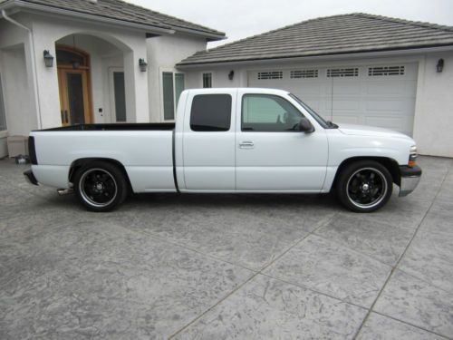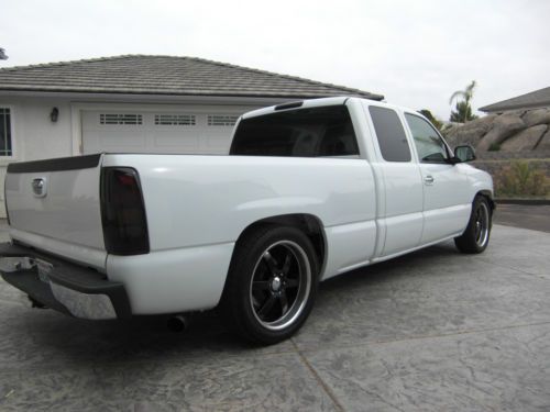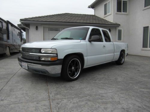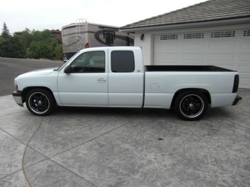 1999 Chevy Silverado C1500 4.8 liter v.8. Lowered 2 1/2'' in the front and 4'' in the back with 20'' Boss wheels, 275 45 20 tires in the back and 275 40 20 in the front, they have probably 90% tread left. A/c blows ice cold, heater works great as well. The back windows and two back side windows have been tinted with limo and it also has a limo front tint strip. It has a Kenwood deck with two Rockford Fosgate 10'' subs. Polished stainless exhaust tip, billet grille, smoked taillights, escalade door handles. The A/c is all new compressor,dryer, evaporator, over a thousand dollars just put into the a/c. New PPG base coat clear coat, also color sanded and buffed. Email or Call Ryan with any questions 760-504-7870 |