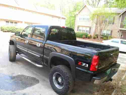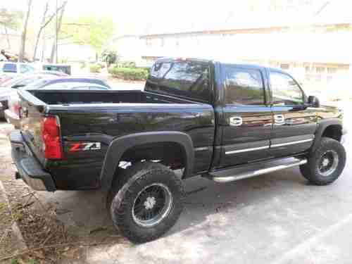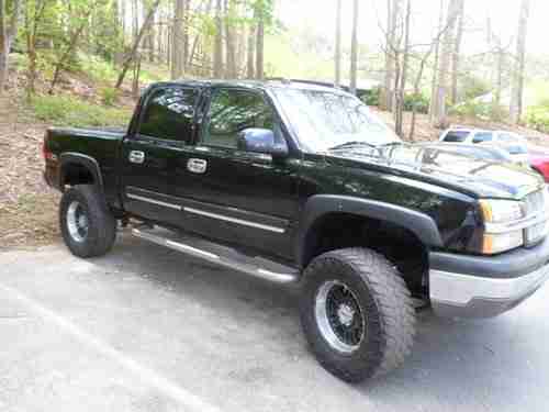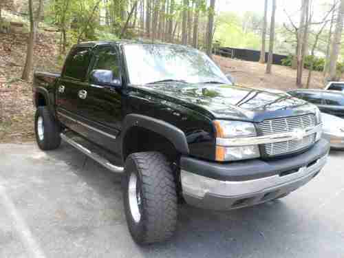 2004 SILVERADO CREW CAB Z71 4X4 5.3L 97k BLACK, WITH TAN LEATHER, POWER HEATED SEATS, BOSE SPEAKERS, WITH SONY CD, TOW-PACKAGE, CHROME RUNNING BOARDS,BED-LINER, 6' LIFT, WITH AFTERMARKET 18' BLACK MOTO METAL RIMS WITH 35' TRAIL GRAPLER TIRES. IN GOOD CONDITION. REAR TIRES ARE WORN, NEEDS TWO TIRES. NO MUFFLERS.
