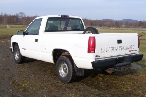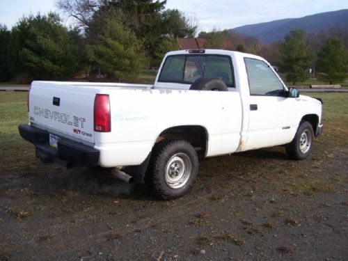 I AM SELLING MY CHEVY SHORT BED HEART BEAT OF AMERICA EDITION,THIS WILL MAKE A NICE STREET ROD OR JUST DRIVE AS IS.THIS HAS 5-SPEED NEW TIRES ,INSPECTION,NEW EXAUST AND YOU CAN DRIVE THIS ANYWHERE AND GETS GOOD GAS MILEAGE.THIS WAS ALLWAYS MATAINED AND IF YOU WOULD DRIVE THIS YOU SEE WHAT I MEAN.FEW ROCKER ARE GOOD,SPOTS OF RUST ON 1 CAB CORNER AND ON 1 FENDER.UNDER CARRIAGE IS CLEAN FOR YEAR.REMEMBER THIS IS A 95.BED HAS NO RUST HOLES AND IS CLEAN.PAINT IS PEELING ON HOOD AND SOME OTHER SPOTS.TITLE IN HAND.THIS IS AT OUR OTHER LOCATION IN PA 17702.EMAIL WITH ANY QUESTION OR EMAIL YOUR # AND I WILL CALL YOU.GOOD LUCK