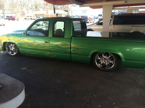 FIRST OFF THIS THING IS ABOUT AN 8.5 OUTTA 10. IF YOUR LOOKING FOR FLAWLESS THIS ISNT IT. JUST BEING HONEST. ALL FLAWS ARE COSMETIC.. MECHANICALY SOUND. HAS A FEW CRACKS IN THE FIBERGLASS INTERIROR AND ONE VERY SMALL CRACK ON THE HOOD. ALSO FIBERGLASS. AND THE INTERIOR COULD USE A LITTLE LOVE. BUT ITS A GREAT TRUCK.. AS FAR AS THE AIR RIDE GOES ITS BAGGED ON ALL CORNERS WITH A 2 LINK OUT BACK VIAIR COMP AND 8 GAL TANK. 3/8S LINE... FRONT UP AND DOWN BACK UP AND DOWN... BILLET STEERING WHEEL CUSTOM SEATS AND DOOR PANELS. AIR BRUSHED ALIENS ALL AROUND... EXTERIOR.. HAS HEAT AND AC. CRYSTAL CLEAR GLASS AND FLUSH MOUNT BEDCOVER. ... LOCATED IN CENTRAL ARKANSAS... |